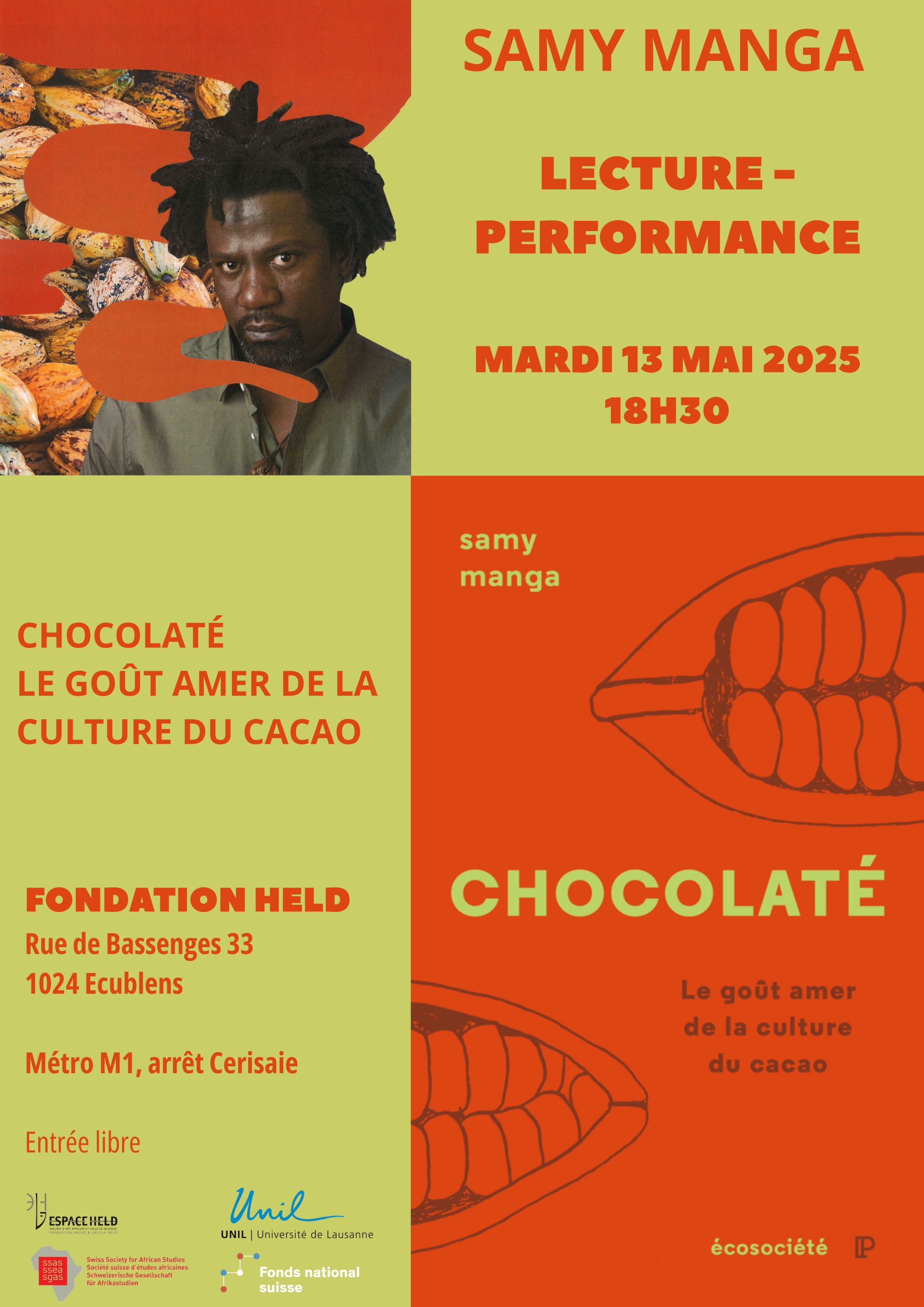 In seinem Buch Chocolaté (éditions écosocieté) geht der Kamerunische Schrifsteller, Künstler und Oeko-Aktivist Samy Manga der Wertschöpfungskette des Kakao von der Plantage bis zur fertigen Tafel Schokolade nach.