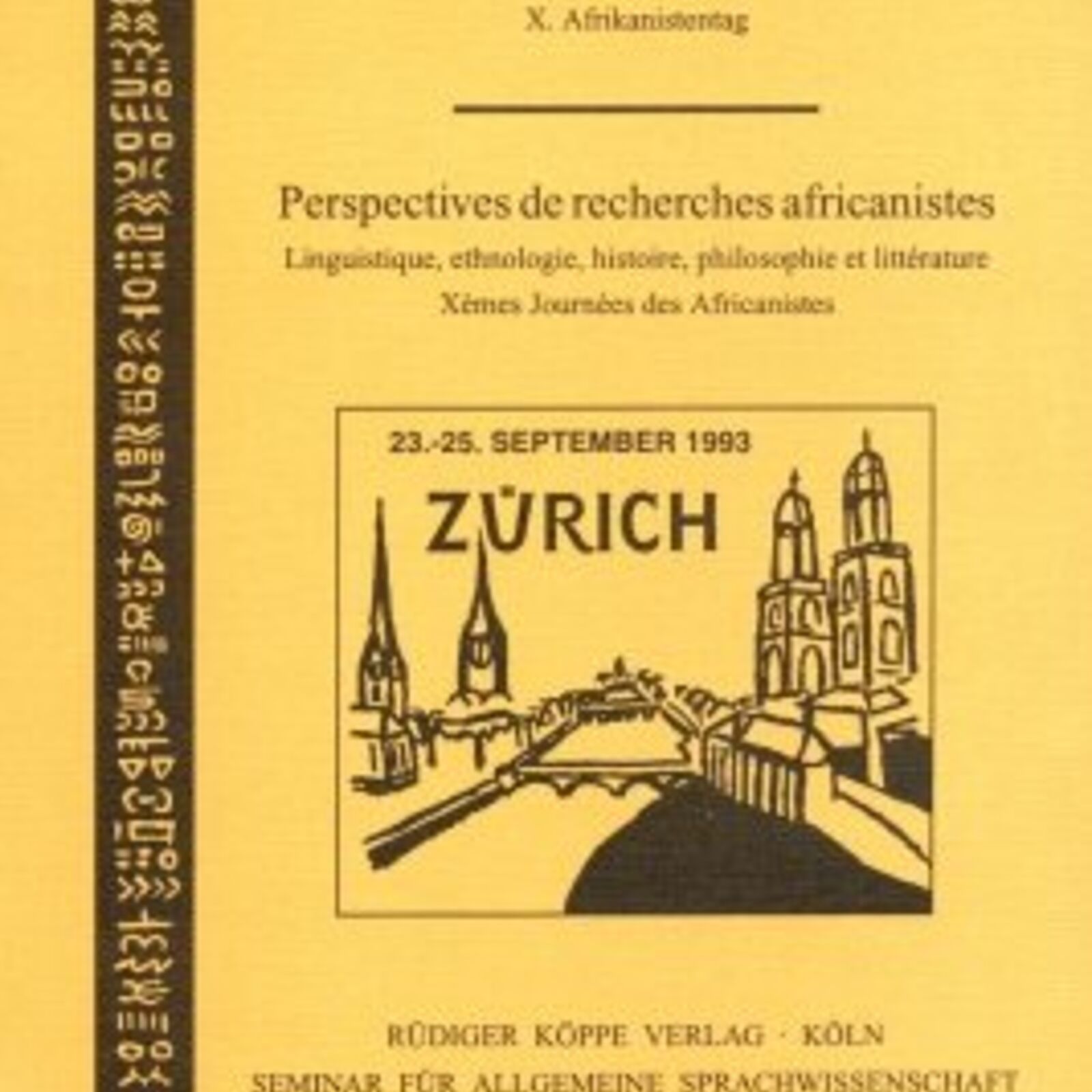 Perspektiven afrikanistischer Forschung. Beiträge zur Linguistik, Ethnologie, Geschichte, Philosophie und Literatur / Perspectives de recherches africanistes: linguistique, ethnologie, histoire, philosophie et littérature. Bearth, Thomas et al. (éds.), Rüdiger Köppe Verlag, Berne, 1994.