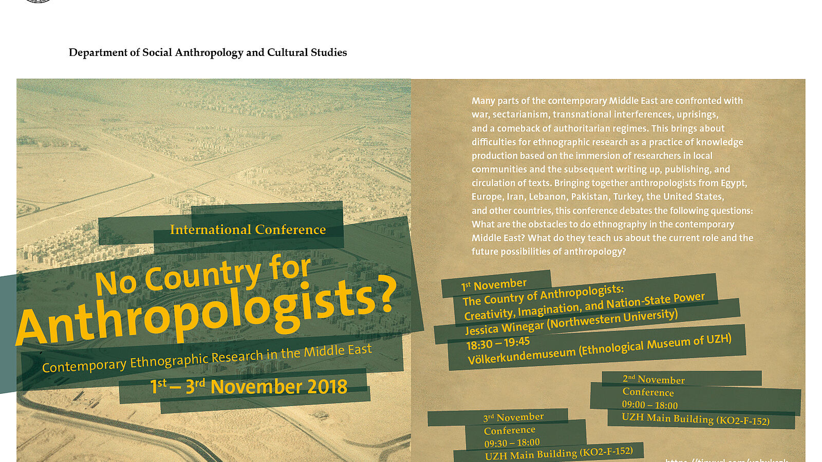 Many parts of the contemporary Middle East are confronted with war, sectarianism, transnational interferences, uprisings, and a comeback of authoritarian regimes. This brings about difficulties for ethnographic research as a practice of knowledge production based on the immersion of researchers in local communities and the subsequent writing up, publishing, and circulation of texts. Bringing together anthropologists from Egypt, Europe, Iran, Lebanon, Pakistan, Turkey, the United States, and other countries, this conference debates the following questions: What are the obstacles to do ethnography in the contemporary Middle East? What do they teach us about the current role and the future possibilities of anthropology?