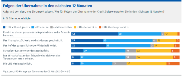 [3] gfs.bern (2023): Zwischen Wut und Ohnmacht. Übernahme der CS durch die UBS. Befragung im Auftrag der SRG, 24.03.2023 https://cockpit.gfsbern.ch/de/cockpit/234106-uebernahme-der-cs-durch-die-ubs/.