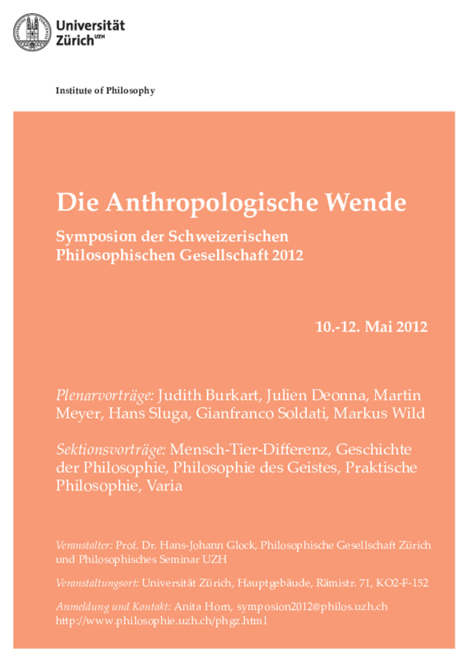 Organisateur: Société zurichoise de philosophie et Séminaire de philosophie de l'Université de Zürich (Prof. Dr. Hans-Johann Glock)