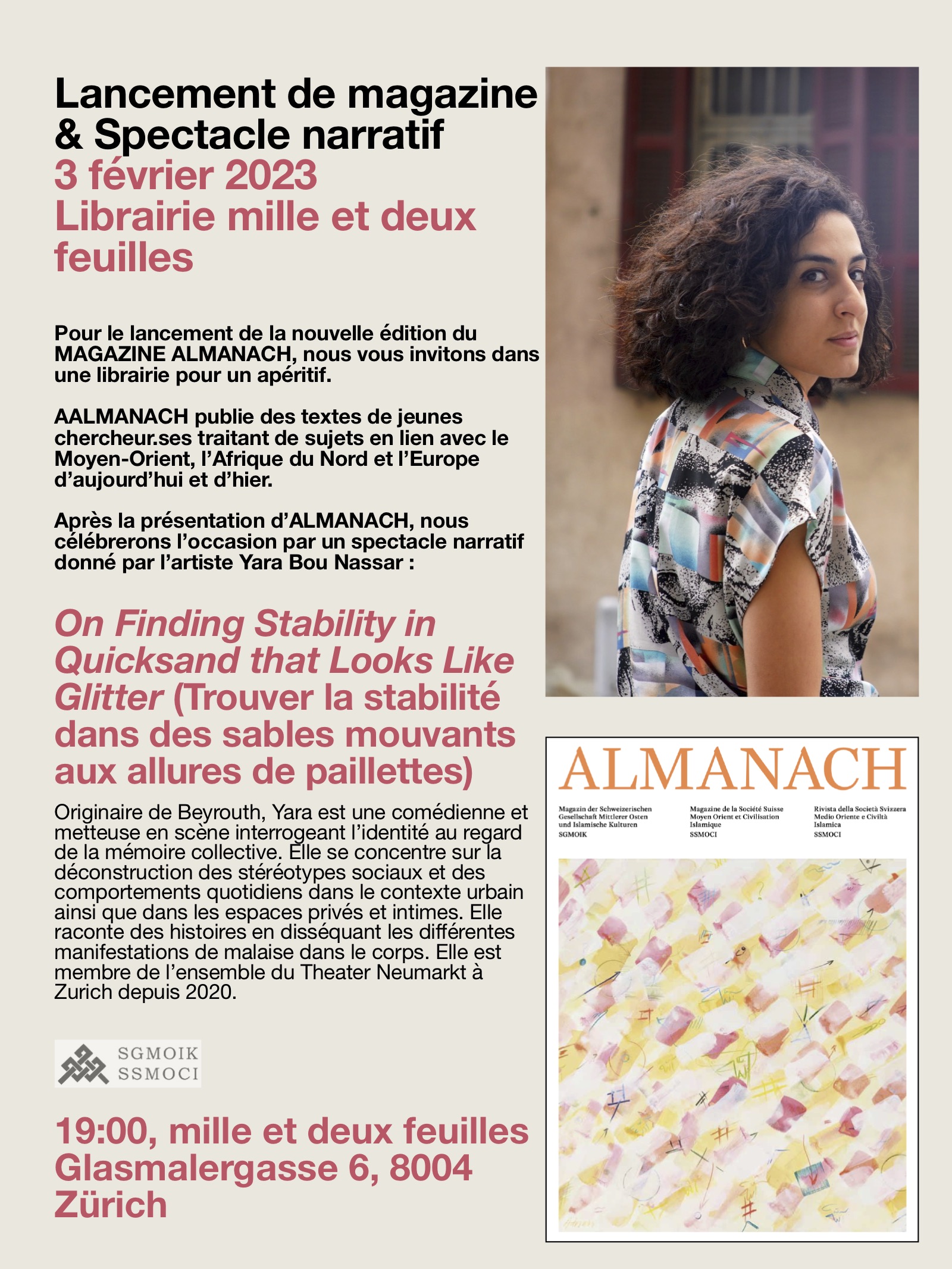 Après la présentation d’ALMANACH, nous célébrerons l’occasion par un spectacle narratif de l’artiste Yara Bou Nassar :