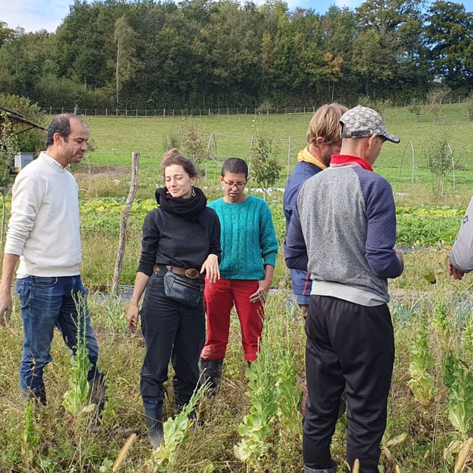 Les échanges les plus vifs ont lieu dans ces moments où nous sommes ensemble, côte à côte, nous laissant toucher par ce qui nous entoure. Désherber ensemble, par exemple, déclenche des discussions animées : comment protéger les sols, quelles techniques utiliser contre les parasites, comment chacun·e ressent le dérèglement climatique. En Suisse, un été trop pluvieux avait perturbé les semis ; au Maroc, c’était la sécheresse qui les préoccupait. Ces vulnérabilités partagées, même inégales, nous ont rapprochés. J’étais d’ailleurs partagée entre les attentes des uns et les formes de politesse des autres : les hôtes suisses commençaient volontiers par de longues introductions orales, alors que certains participants marocains préféraient marcher, toucher, voir et goûter avant d’écouter.