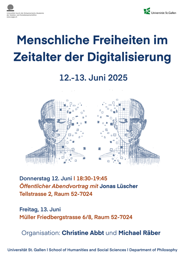 Müssen wir menschliche Freiheiten in Zeiten der Digitalisierung neu denken? Digitalisierung und beschleunigte Entwicklungen von KI-basierten Technologien und Anwendungen stellen unsere Gesellschaft vor immense Herausforderungen in Bereichen wie u.a. Datenschutz, Privatsphäre, Arbeit und öffentliche Meinungsbildung. Die Frage, wie wir diesen Herausforderungen adäquat begegnen können, ist äusserst relevant. Unsere Veranstaltung richtet den Blick allerdings auf noch grundlegendere Fragen: Wie beeinflusst die Digitalisierung unser Selbstverständnis als freie, handelnde Subjekte und Gesellschaften? Was kann es bedeuten, in einem Umfeld von automatisierten digitalen Prozessen und Algorithmus gesteuerten Technologien frei zu handeln, wenn unsere Subjektivität und unser Verhalten von vordefinierten Regeln, Strukturen und Wahrscheinlichkeiten mitbestimmt werden? Wie verändert sich unter diesen Bedingungen die menschliche Fähigkeit, Regeln zu ändern oder gänzlich neue zu erfinden und zu etablieren?
