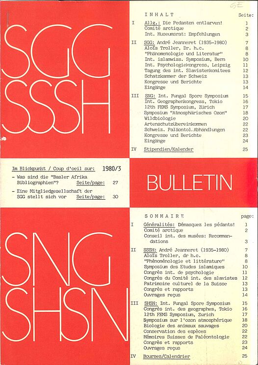 Das Bulletin der SAGW informiert zwei- bis dreimal jährlich über die Aktivitäten der SAGW, über Neuigkeiten aus dem Netzwerk der Akademie und über die Schweizer Hochschulpolitik. Jedes Heft enthält ein Dossier zu einem Thema aus den Geistes- und Sozialwissenschaften. Das Bulletin kann hier kostenlos abonniert werden.
