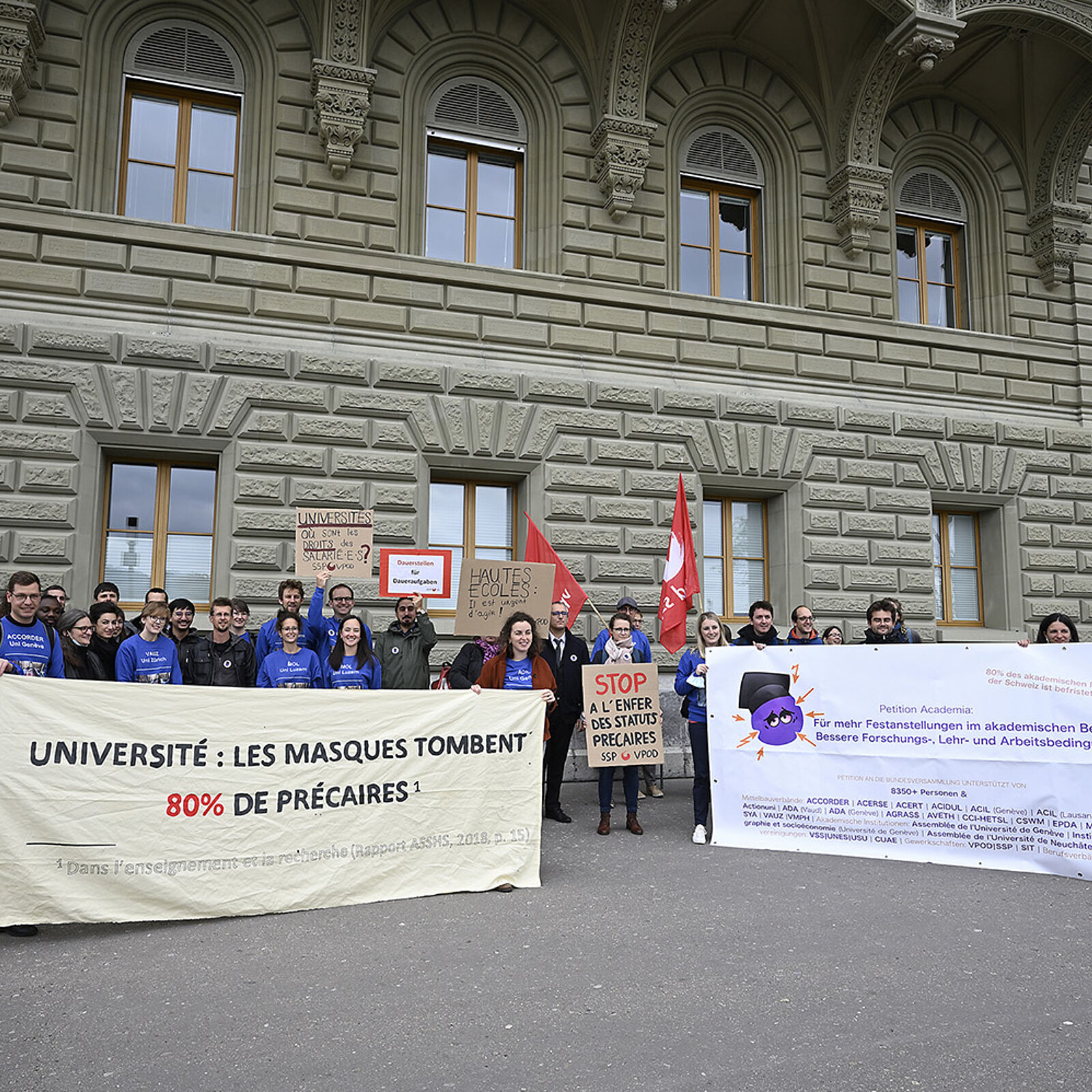 Der akademische Mittelbau fordert bessere Arbeitsbedingungen und mehr Festanstellungen an den Hochschulen. Am 8. Oktober wurde eine Petition bei der Bundesversammlung eingereicht.