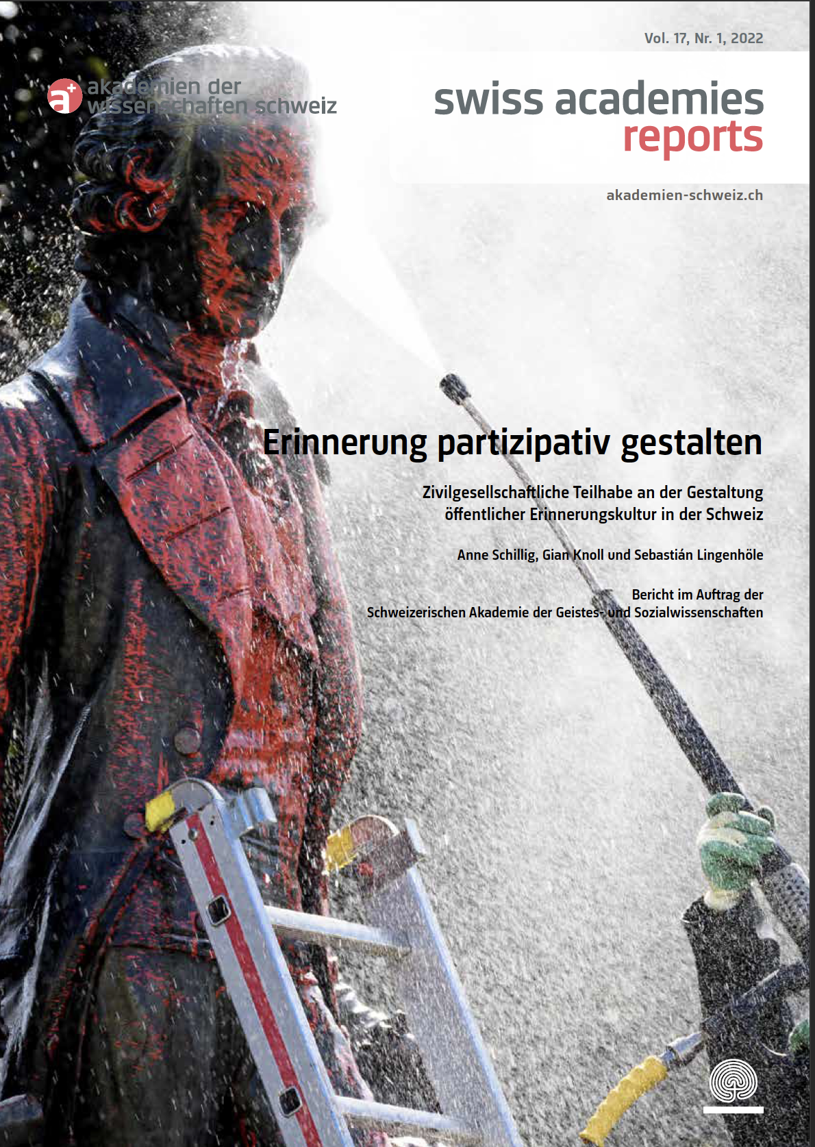 Schillig, Anne, Gian Knoll und Sebastián Lingenhöle (2022): Erinnerung partizipativ gestalten. Zivilgesellschaftliche Teilhabe an der Gestaltung öffentlicher Erinnerungskultur in der Schweiz. Bericht im Auftrag der Schweizerischen Akademie der Geistes- und Sozialwissenschaften (Swiss Academies Reports 17,1). https://doi.org/10.5281/zenodo.6539433