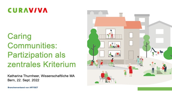 Von 2020 bis 2022 evaluierte die Organisation Curaviva schweizweit verschiedene Caring Communities. Daraus erstellte sie einen Kriterienkatalog von Good Practices, welche innerhalb solcher Gemeinschaften drei Ziele fördern: Erstens, die Teilhabe und Teilgabe von Menschen im Alter zu stärken, zweitens, deren selbstbestimmtes Wohnen zu fördern und drittens, lokale und bedürfnisgerechte Vernetzungsstrukturen zu schaffen.
