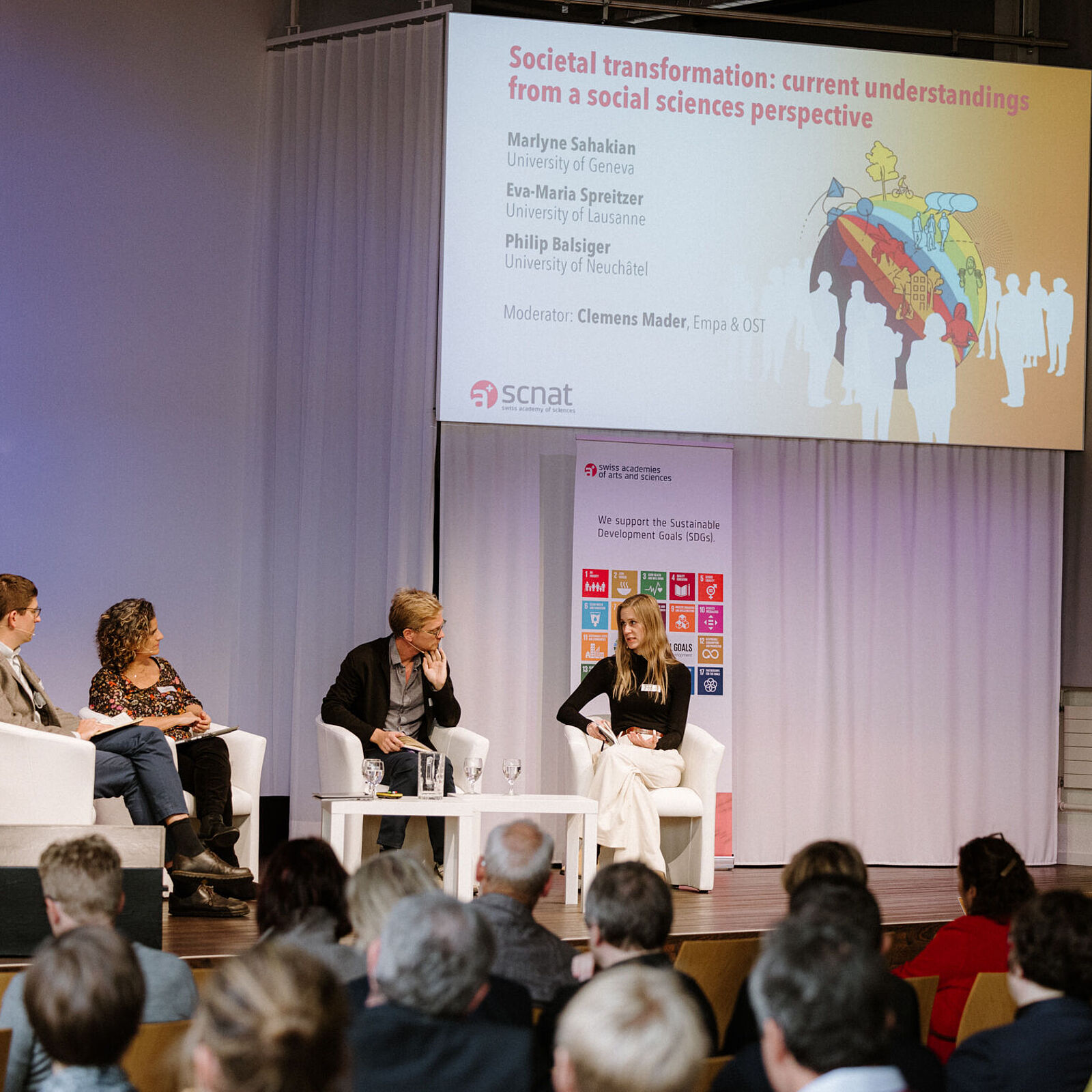 Au cours du forum, la question des transformations sociales a occupé une place importante. Animé par Clemens Mader, chercheur au Laboratoire fédéral d’essai des matériaux et de recherche, un panel de discussion a cherché à évaluer la portée des changements en œuvre et à mieux cerner les éléments déclencheurs d’un changement vers plus de durabilité.