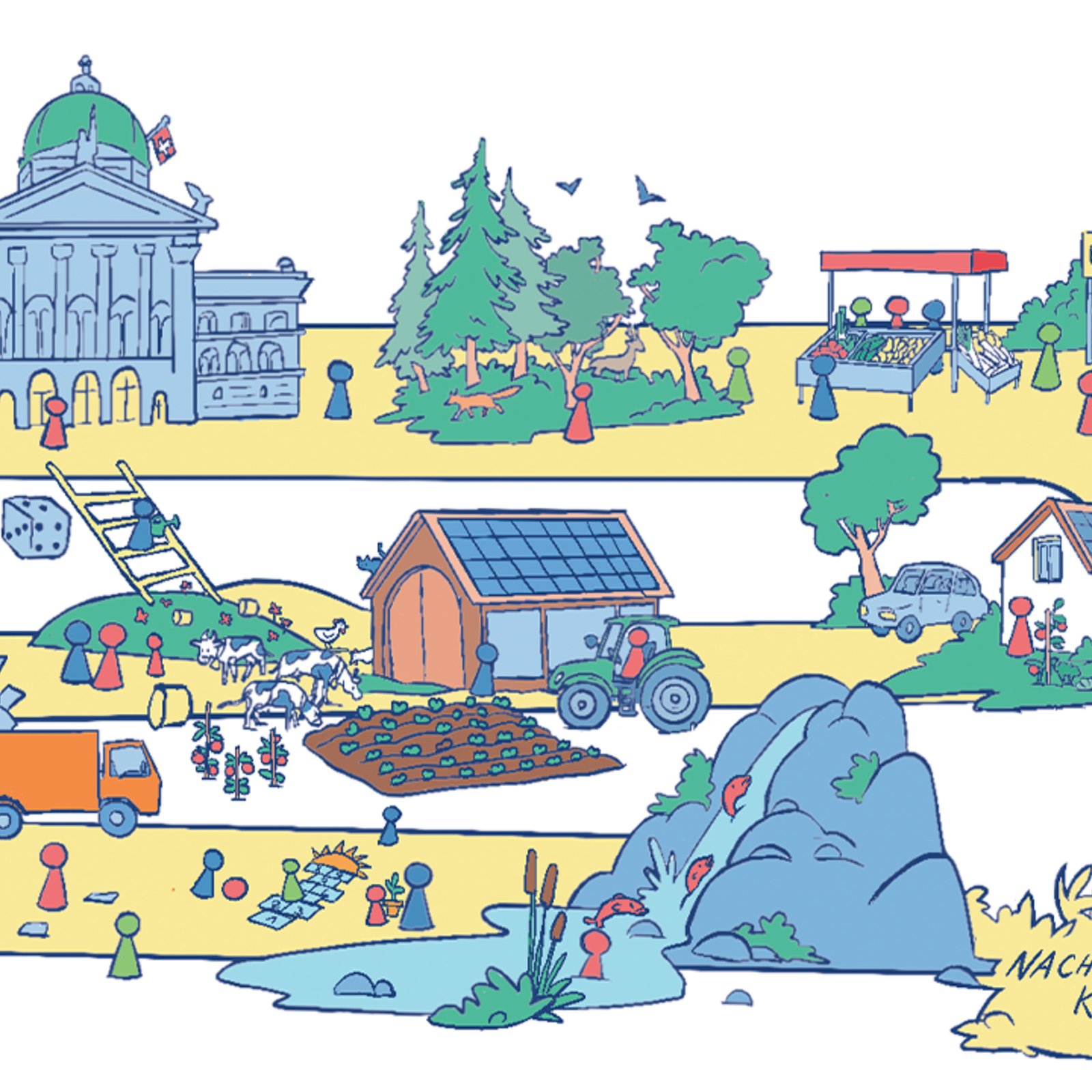 Seit 2021 zählt der Bundesrat das Ziel «nachhaltiger Konsum- und Produktion» (SDG 12) zu den drei Schwerpunkten der Strategie Nachhaltige Entwicklung 2030. Denn es ist klar: Der Konsum in der Schweiz ist zu hoch und nicht nachhaltig. Wie in vielen anderen westlichen Ländern mangelt es zwar nicht an guten Absichten, konkrete Massnahmen werden dagegen nur zögerlich ergriffen. Kurz gesagt stecken wir in einer Sackgasse: Nachhaltigkeit ja, Einschränkungen nein. Das Narrativ des Wohlstands und guten Lebens dank Wachstum hält sich hartnäckig und hat im Streben nach grünem Wachstum (Green Growth) neue Attraktivität gewonnen.