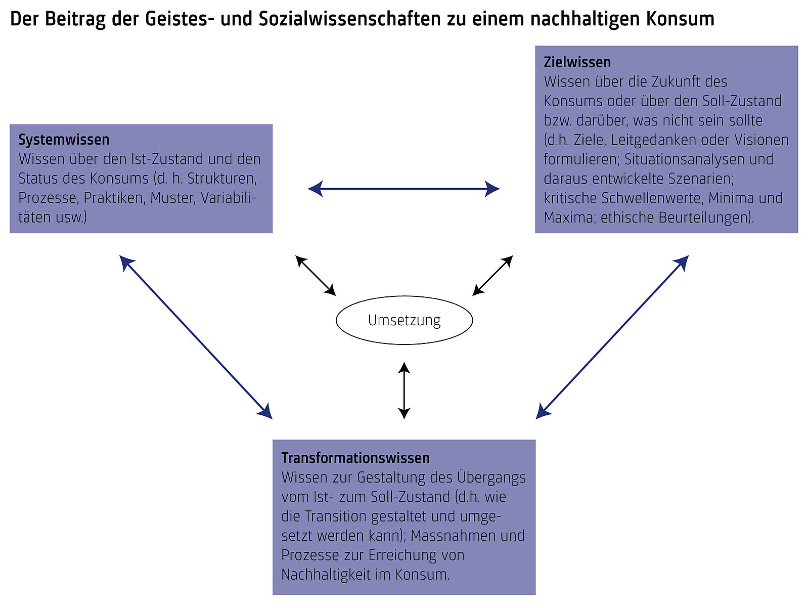 Dieser Teil der Publikation fasst verschiedene Auffassungen zusammen, wie die Forschung zur Transformation des Konsums erfolgen soll. Die Geistes- und Sozialwissenschaften sind in der Lage, geeignete Lösungsansätze für komplexe Probleme der Gesellschaft durch inter- und transdisziplinäre Kooperationen zu untersuchen und zu erforschen.