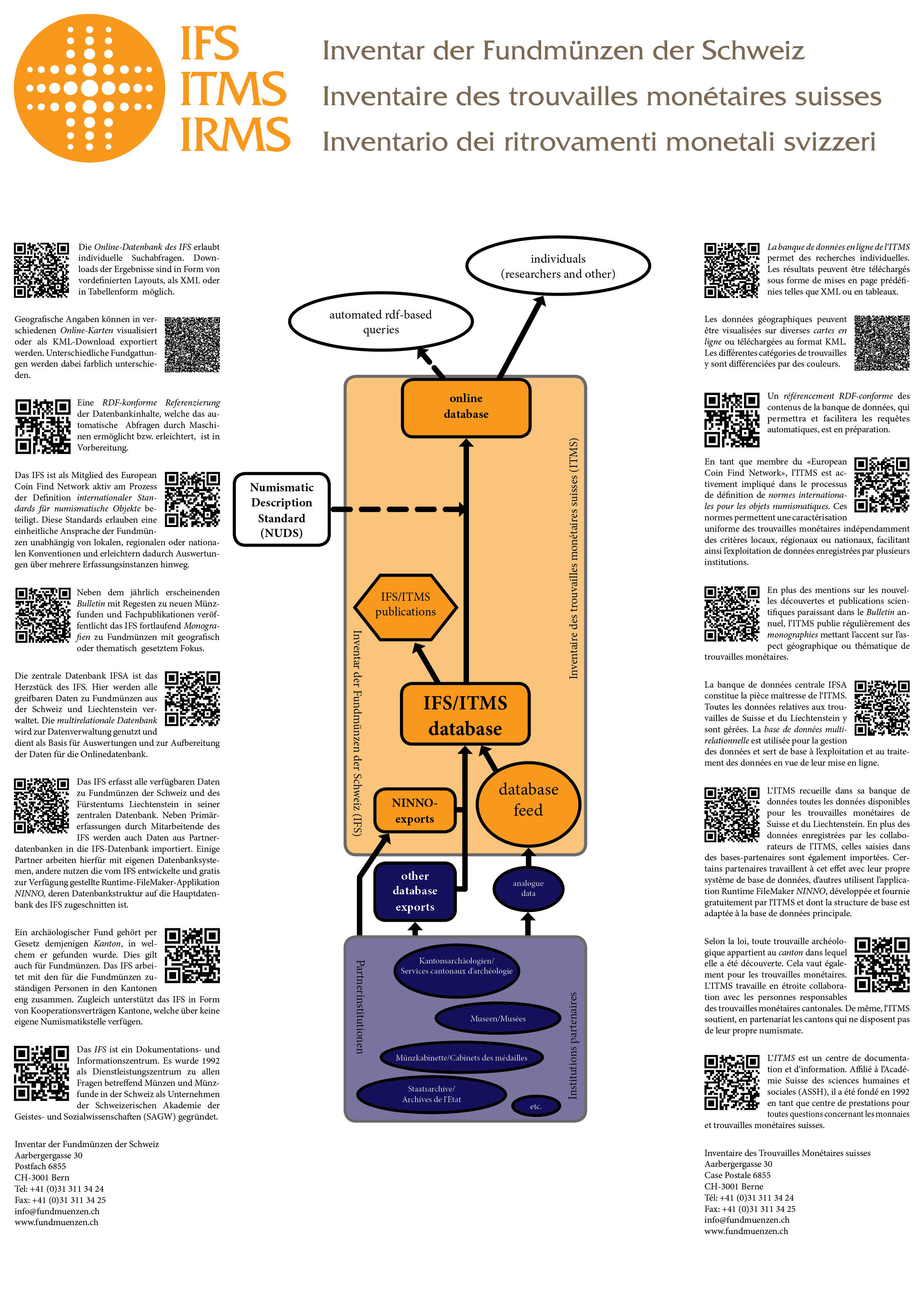 Das Inventar der Fundmünzen der Schweiz (IFS), ein Unternehmen der SAGW, ist das Dokumentations- und Informationszentrum für archäologisch-numismatischen Quellen – Münzfunde und relevante Dokumente – der Schweiz und des Fürstentums Liechtenstein. Als freie Ressource stellt das IFS u. a. auf der eigenen Homepage Informationen zu Münzfunden in Form von Datenbanken zur Verfügung; derzeit sind über 1'100 Fundkomplexe mit über 20'000 Münzen sowie ca. 4'500 Archiv-Transkriptionen einsehbar.