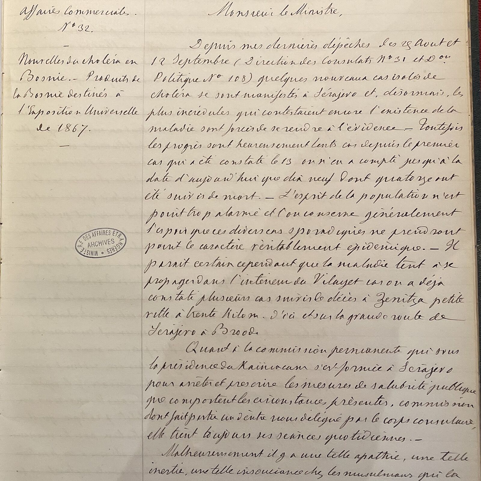 Having always been close to the Ottoman positions and genuinely interested in the welfare of Sarajevo’s community, Koetschet downplayed both the negative assessment and the number of deaths, which he reduced to around 400. However, in November 1866 foreign observers registered the gradual decline of the disease from Sarajevo, attributing it to the constant efforts of Koetschet and the Ottoman administration - and to the arrival of the cold season. After four intense and “anxious” weeks Koetschet finally announced the end of the epidemic to Osman Pasha, who re-opened Bosnia’s borders.