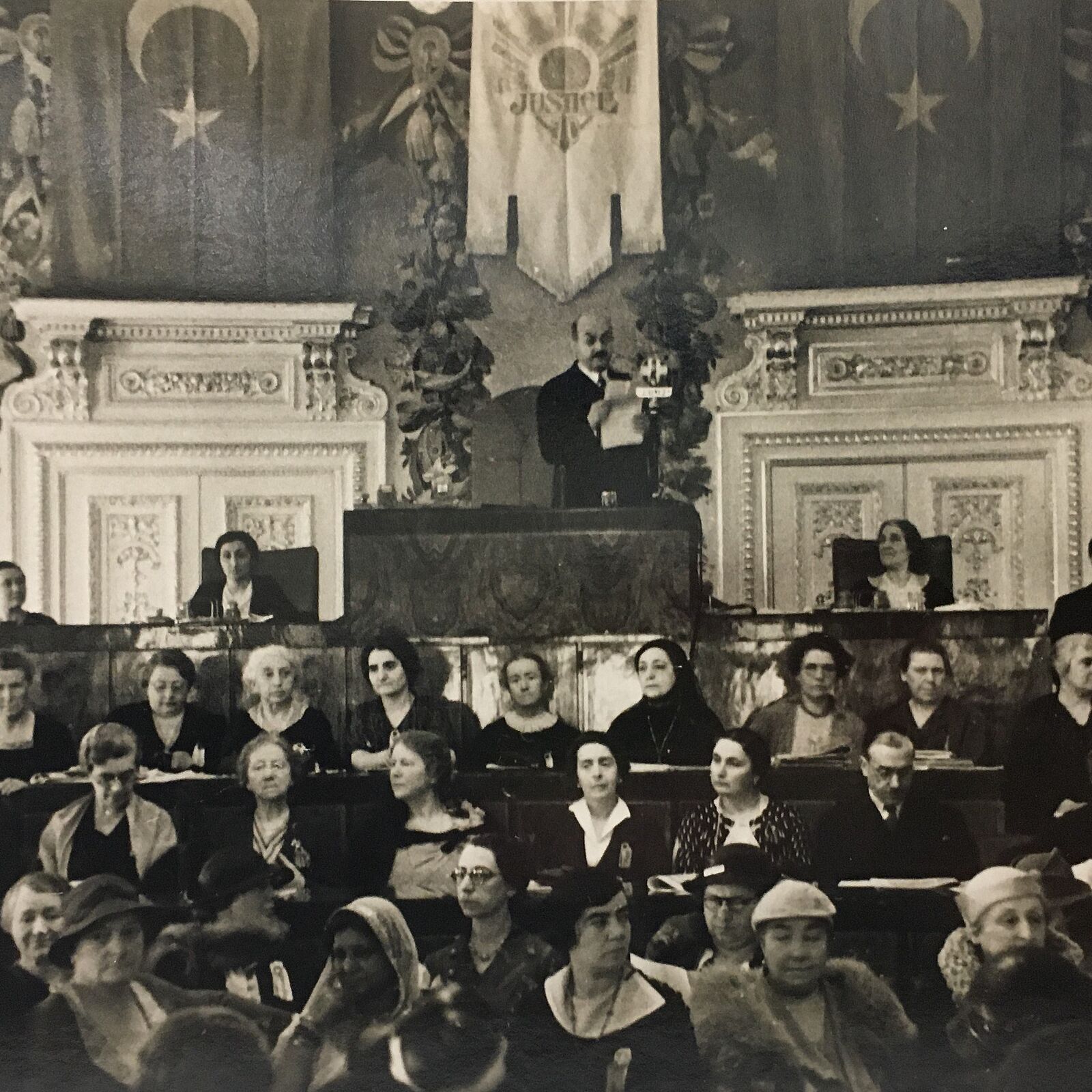 Im April 1935 fand der 12. Kongress des Internationalen Frauenbunds in Istanbul statt. Mit der Wahl Istanbuls als Austragungsort sollten die Aufnahme der vollen Staatsbürgerschaft für Frauen in die türkische Verfassung und die Wahl von 19 Frauen in die Grosse Nationalversammlung des Landes gefeiert werden. Gastgeberin des Kongresses war der Türkische Frauenbund – für die türkische Regierung ein Steilpass, um ihre Modernität zu zelebrieren und mit ihrer «rückständigen» osmanischen Vergangenheit zu brechen. Sie unterstütze den Kongress finanziell, liess dazu eine Million Briefmarken produzieren, die den wichtigsten Köpfen der internationalen Frauenbewegung gewidmet waren, und stellte in einem Teil dieser Briefmarken Atatürk als Befreier der türkischen Frauen dar. Der Staat öffnete auch den Yıldız-Palast, die ehemalige Residenz von Sultan Abdulhamit II, um den Kongress auszurichten.