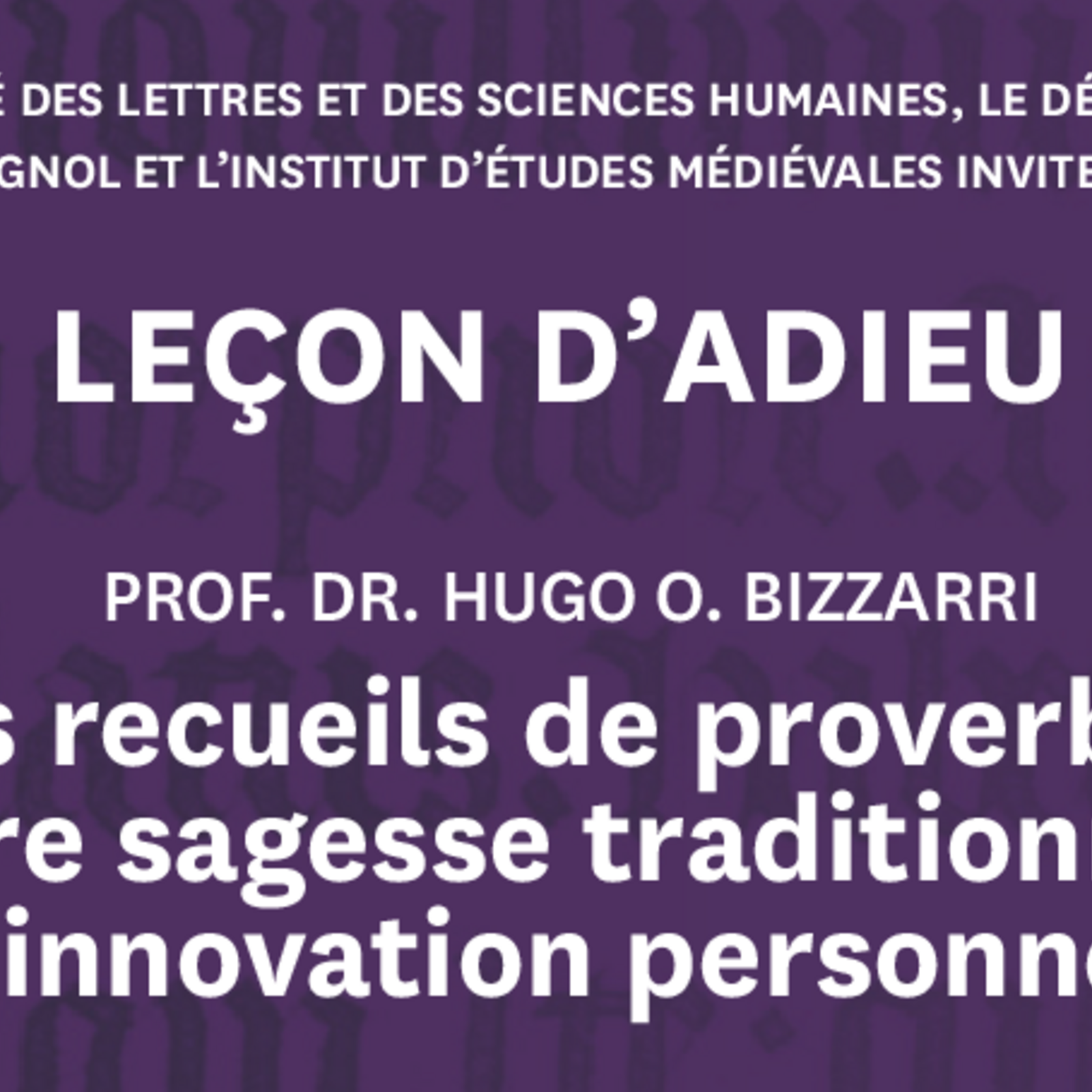 El miércoles 7 de mayo de 2025 a las 17:15 el Prof. Dr. Hugo O. Bizzarri de la Universidad de Friburgo ofrecerá su lección de despedida titulada“Les recueils de proverbes : entre sagesse traditionnelle et innovation personnelle”.